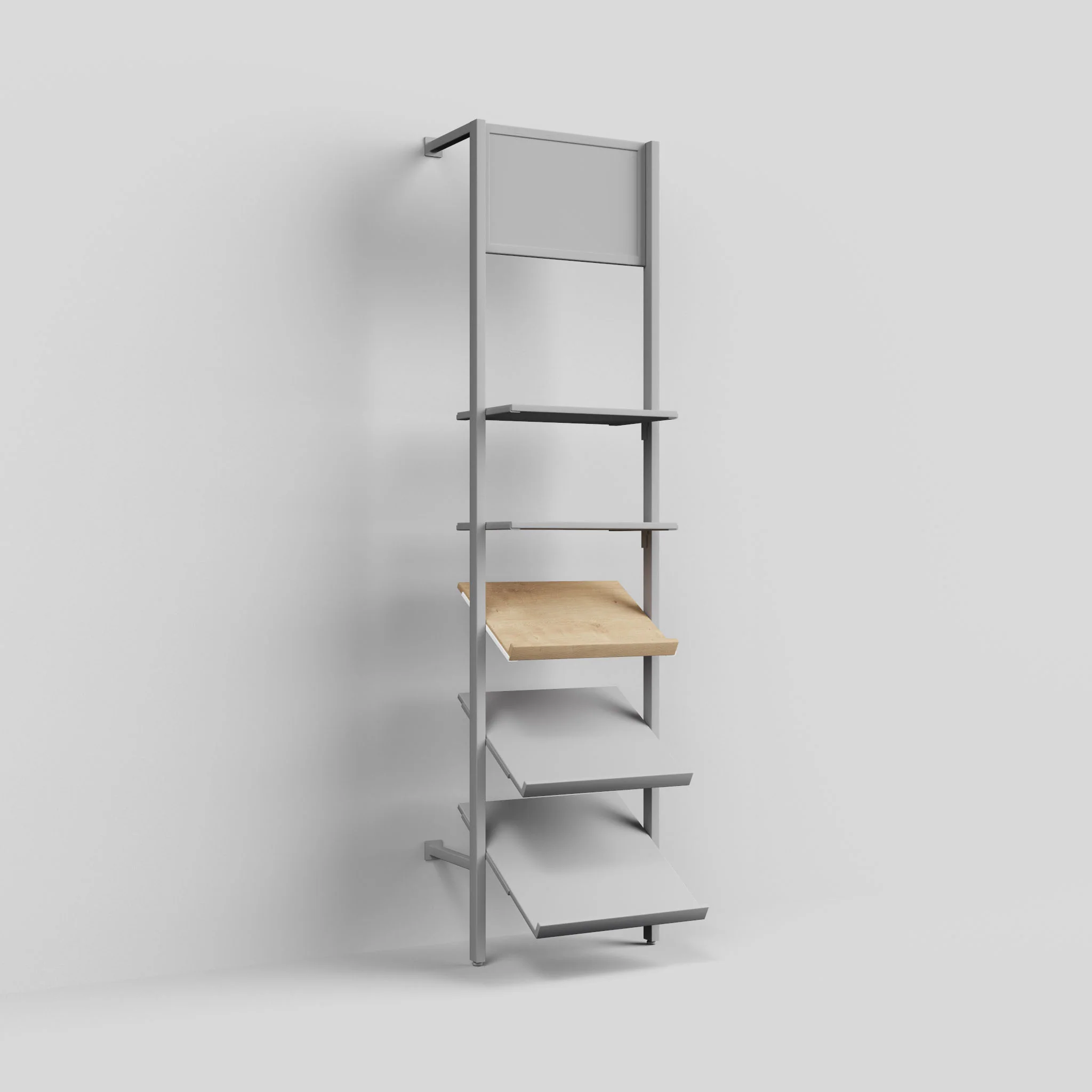 Der komplette Holzfachboden lässt sich unkompliziert und werkzeuglos auf die gewünschte Höhe einhängen – für eine schnelle und flexible Gestaltung Ihrer Verkaufsfläche.