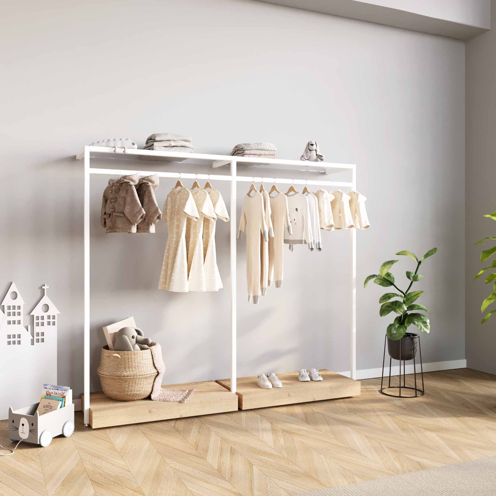 Kleiderstangensystem Ontario, B 203, weiß, mit Podesten