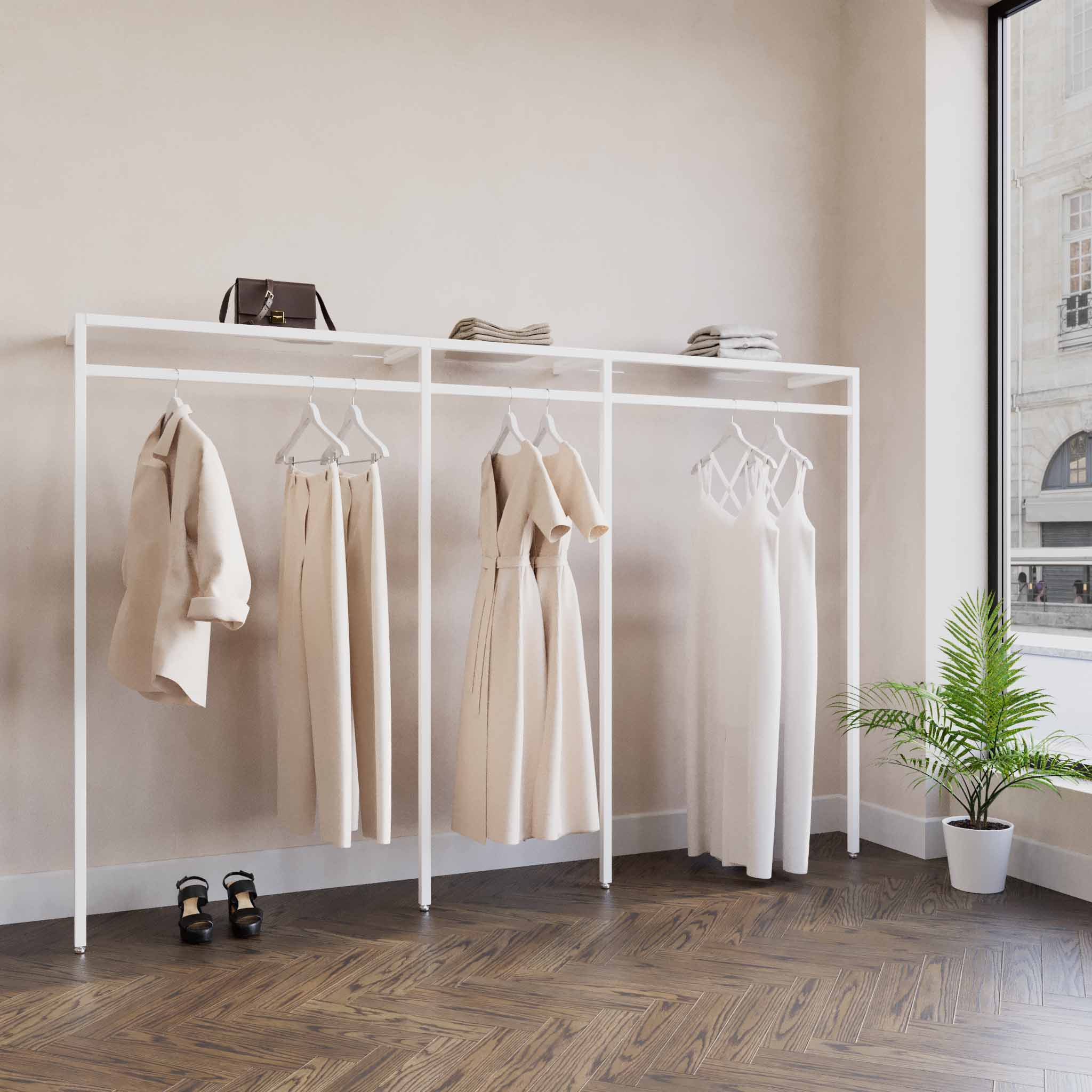 Ontario ist die weiterentwickelte Version unseres bewährten Glasgow-Kleiderstangensystems und bietet vertrautes Design mit neuer Funktionalität. Wenn Sie bereits Kunde sind und Ihr Glasgow-Kleiderstangensystem ergänzen möchten, kontaktieren Sie uns bitte direkt.