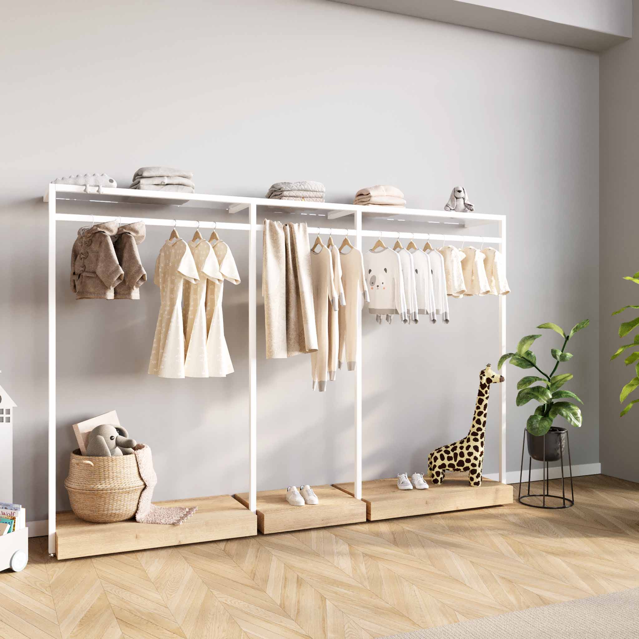 Ontario ist die weiterentwickelte Version unseres bewährten Glasgow-Kleiderstangensystems und bietet vertrautes Design mit neuer Funktionalität. Wenn Sie bereits Kunde sind und Ihr Glasgow-Kleiderstangensystem ergänzen möchten, kontaktieren Sie uns bitte direkt.