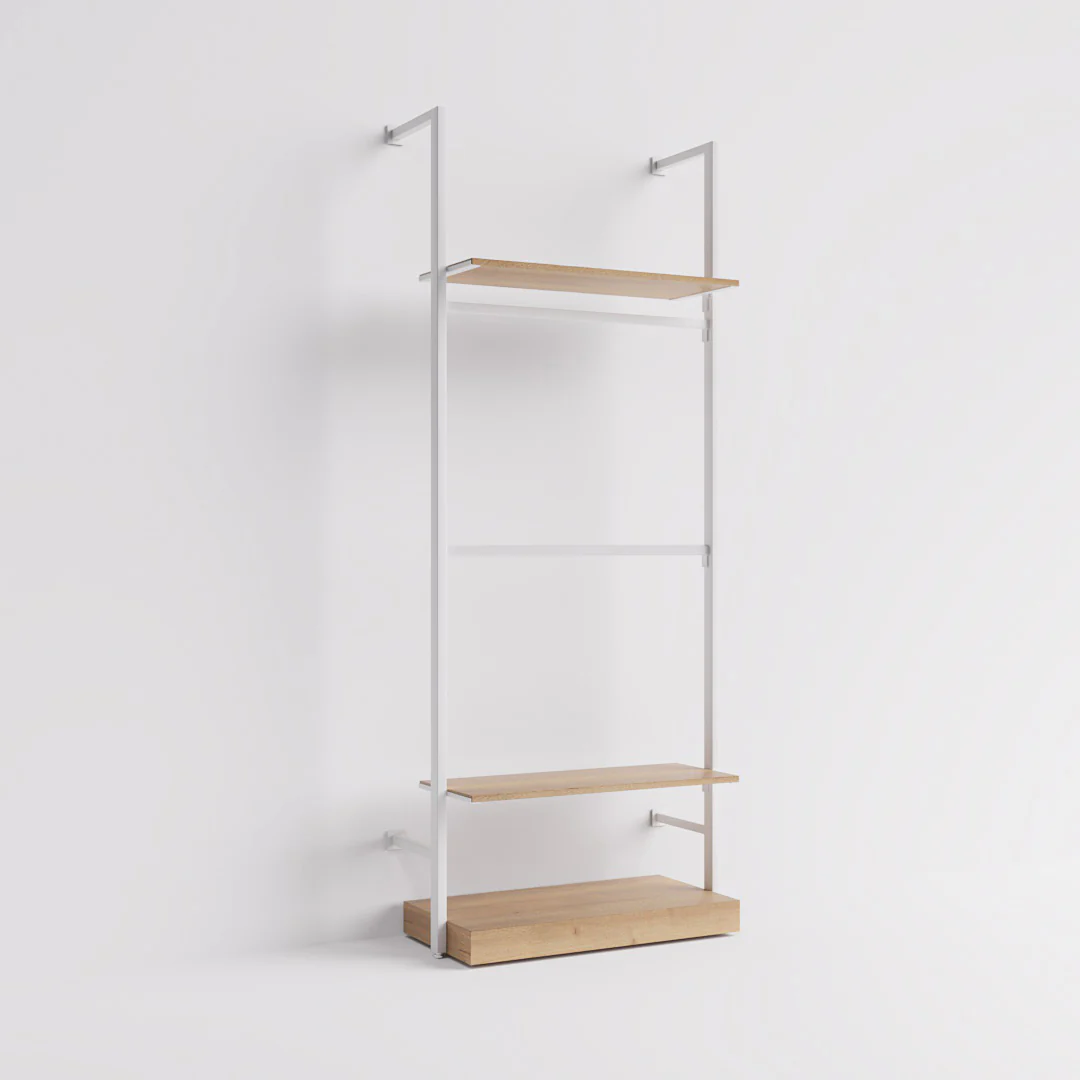- Zwei Kleiderstangen sorgen dafür, dass hängende Kleidungsstücke auf organisierte Weise präsentiert werden.