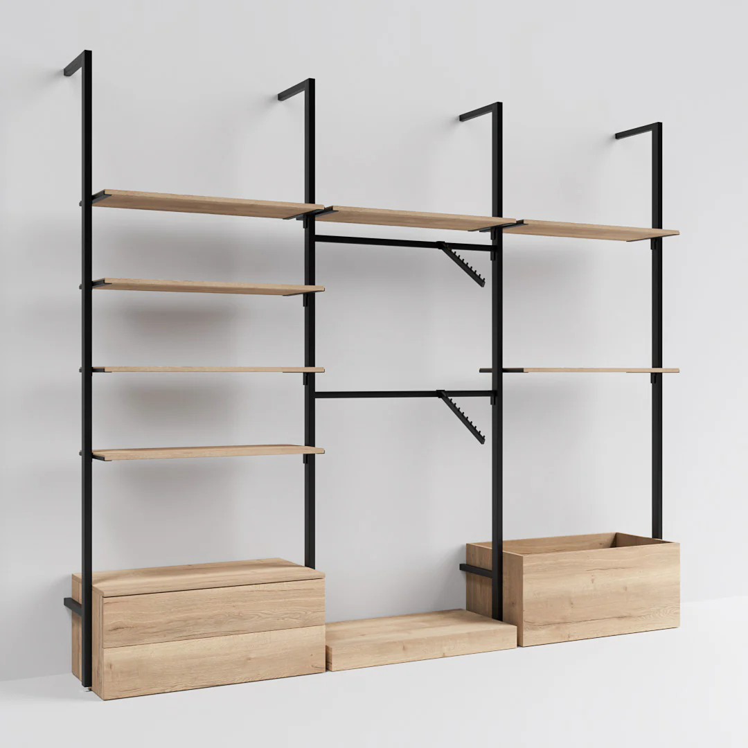 ✓ Zwei Kleiderstangen mit Abhängearmen – Optimal für Shirts, Jacken und Handtücher.