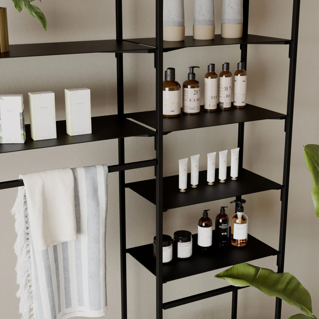 Es besticht durch sein zierliches, ultraschlankes Profil und höchste Funktionalität in zeitloser Gestaltung. Darüber hinaus überzeugt es durch perfekt aufeinander abgestimmte Warenträger. Höhenverstellbare Blechböden und Tragestangen sind in der Form auf das Wesentliche reduziert. Eine hochwertig beschichtete Oberfläche mit Feinstruktur verleiht eine wertvolle Ästhetik.