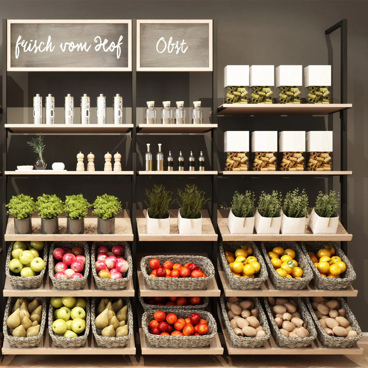 Das großzügige Feinkostregal Ceres Style 4 bietet Ihnen die perfekte Plattform, um verschiedene Sortimente an Feinkost, Obst und Gemüse saisonal und nach Ihren Vorstellungen zu präsentieren.