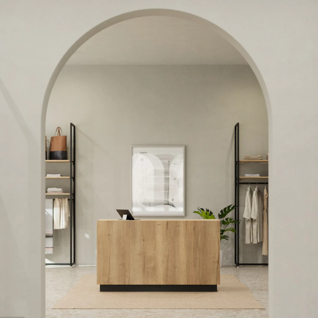 Zeitlos, modern und hochwertig – das ist der Kassentresen Matera. In der Option "Eiche Halifax Tabak" sind sowohl die Front als auch die Seiten des Tresens mit dem hochwertigen Holzdekor „Halifax Eiche Tabak“ verkleidet. Mit markanten Rissen und Ästen wirkt dieses Dekor sehr natürlich und bringt ein stilvolles Ambiente in Ihren Verkaufsraum. Gleichzeitig verleiht die harmonische Kombination mit einem anthrazitgrauen Sockel dem Verkaufstresen Matera einen exklusiven Look und macht ihn zu einem echten Blickfang.